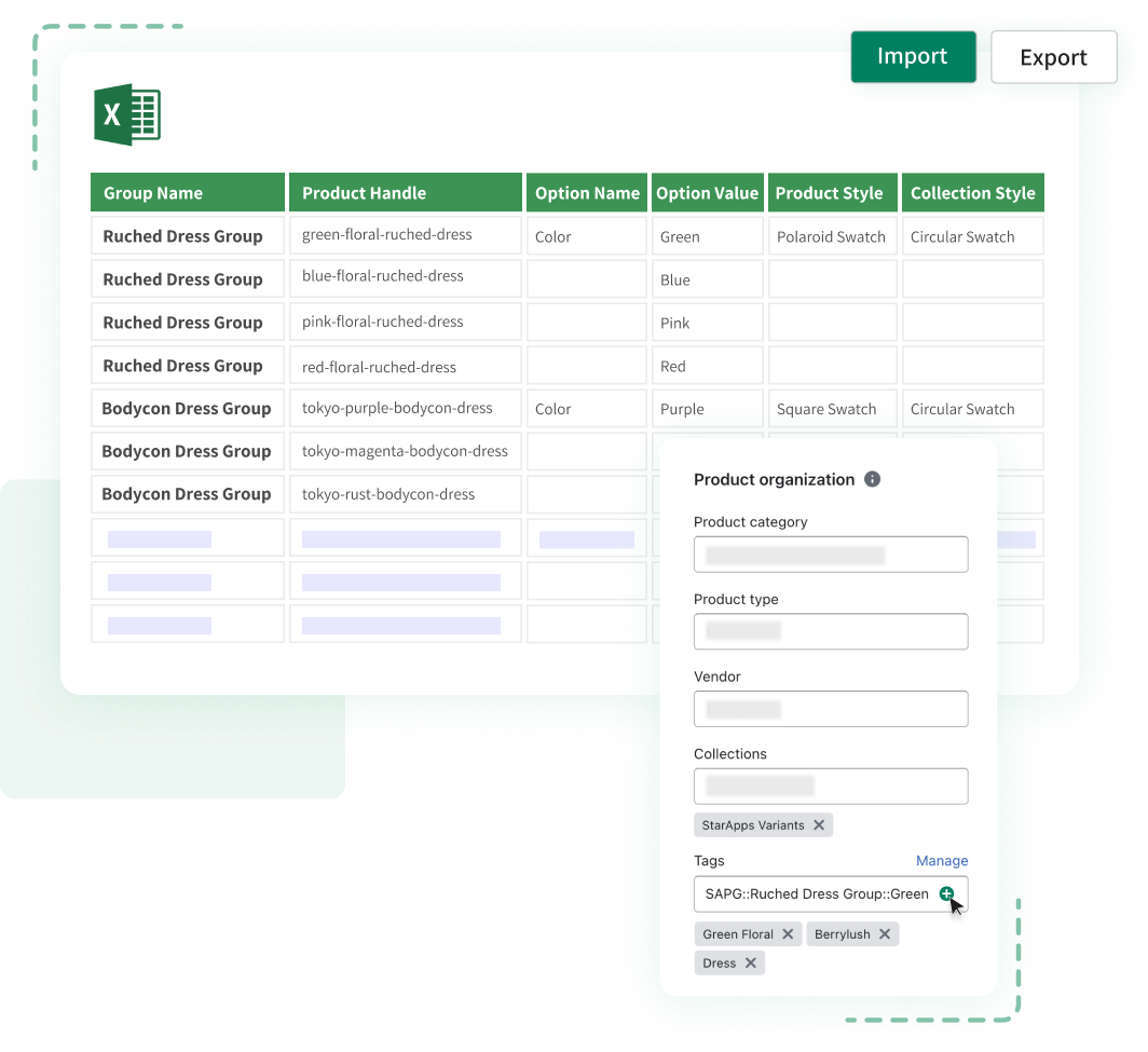 - Back-up your groups data and quickly inspect missing product/swatch images with bulk export and a spreadsheet.